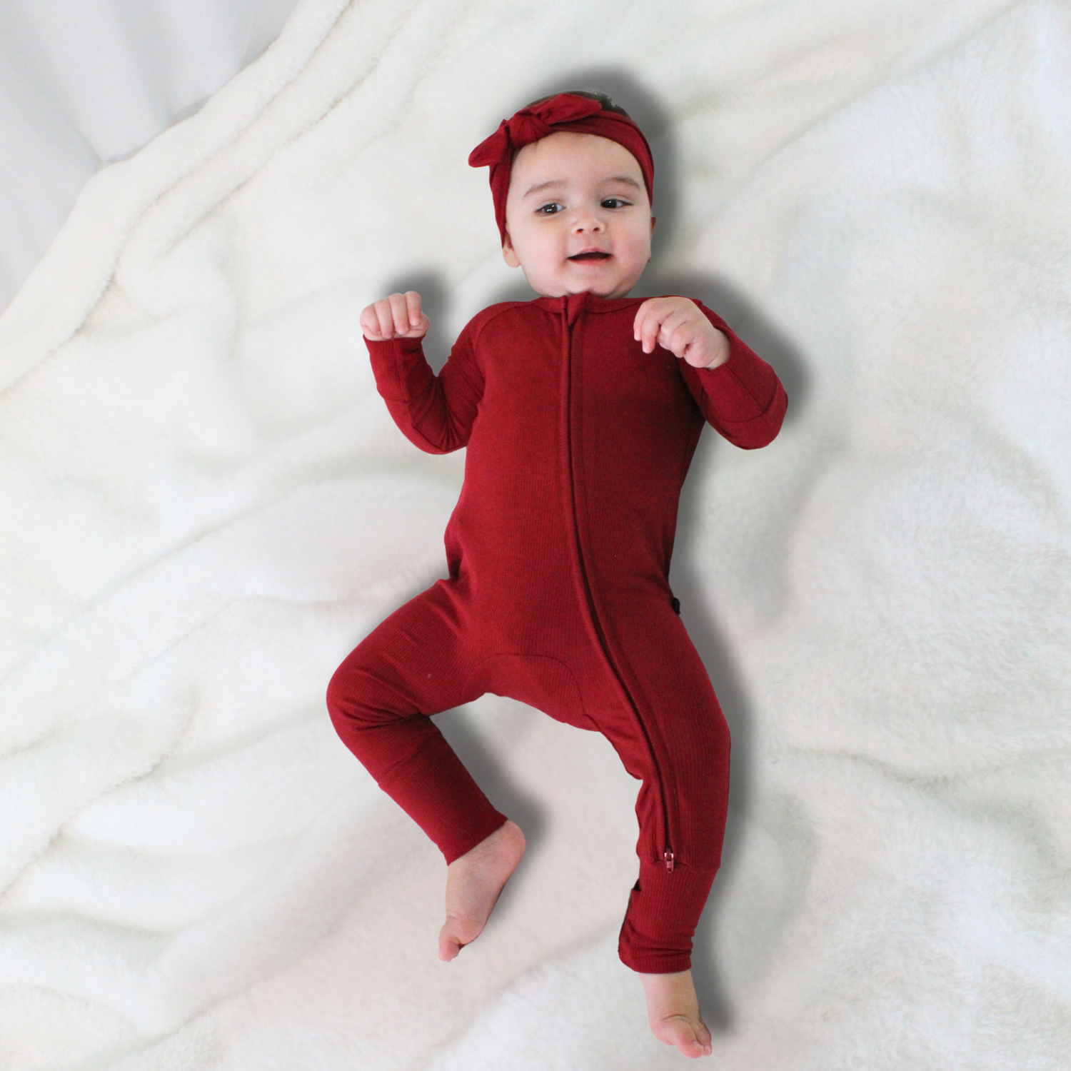 Explore our chic solid colors on our bamboo zip-up rompers, infant gowns,...