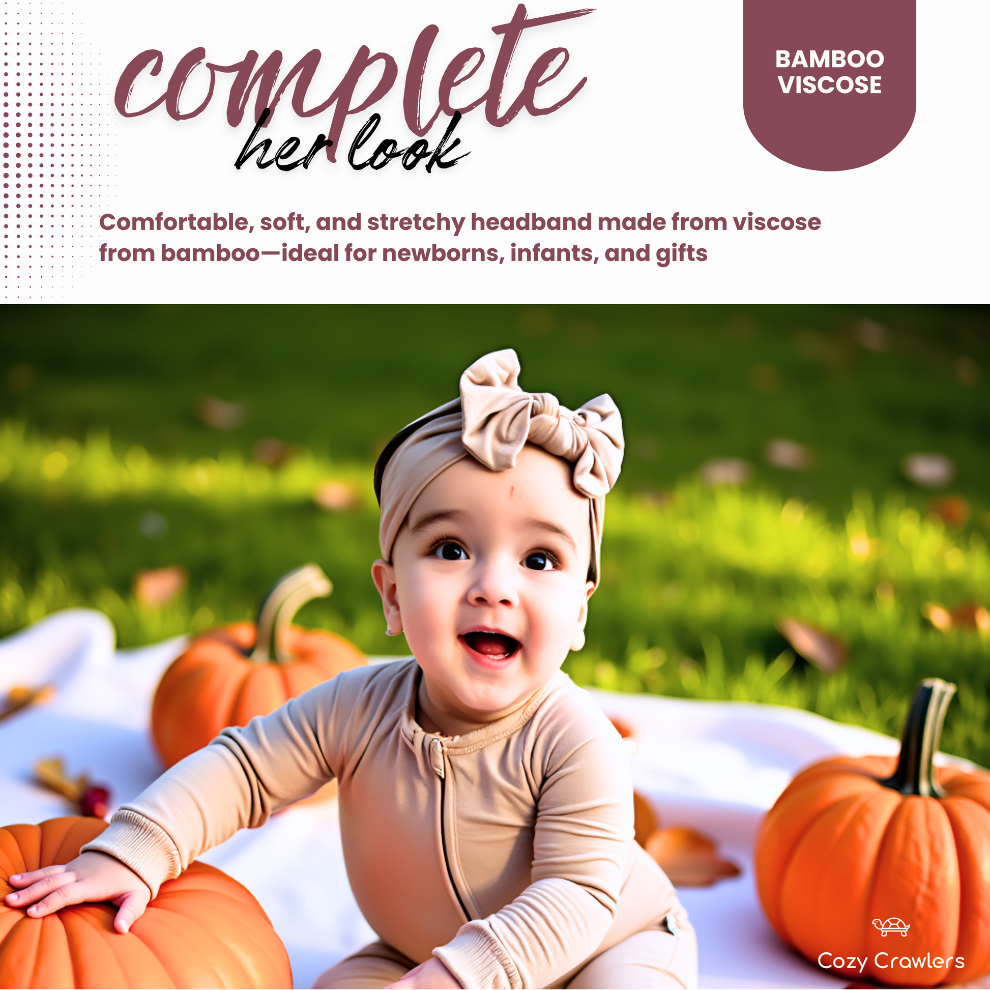 Add a touch of cuteness and comfort to your baby's outfit with Cozy Crawlers' Ultra-Soft Bamboo Headbands. Crafted from our premium, organic viscose from bamboo fabric, these headbands feature an adorable tied bow while keeping your baby's head cozy and irritant-free. Perfect for any occasion, our headbands ensure your little one stays stylish and comfortable all day long.